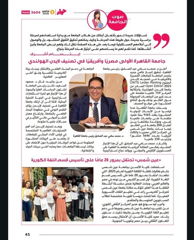 وأشار د. محمد سامي عبد الصادق، إلى أن هذا الإنجاز المشرف يعكس المكانة الريادية لجامعة القاهرة على المستويين الإقليمي والدولي، ويؤكد نجاح إستراتيجية الجامعة في دعم البحث العلمي والابتكار، وبناء بيئة أكاديمية تنافسية وفق أعلى المعايير العالمية.