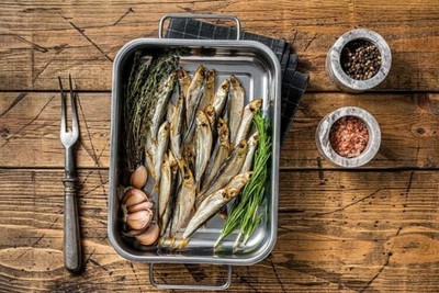 يوضع عصير الليمون، وروزماري والثوم، والزيت، والطماطم، والملح، والكمون، والكزبرة، والبابريكا، والشطة، والكركم في وعاء، واخلطي جيداً ثم أضيفي السمك، وقلّبيه ثم غطّي الوعاء، وضعيه في الثلاجة ساعة، السمك في صينية فرن، ووزعي على وجهه شرائح الليمون، الفرن على حرارة 180 ثم أدخلي الصينية إلى الفرن حتى ينضج سمك السردين، ثم قدميه ساخناً.